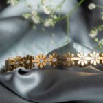 Whether styled solo for a minimalist statement or layered with other bracelets and bangles, the Daisy Spark Kada brings grace and versatility to your jewellery collection.