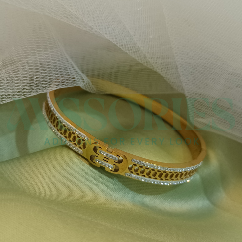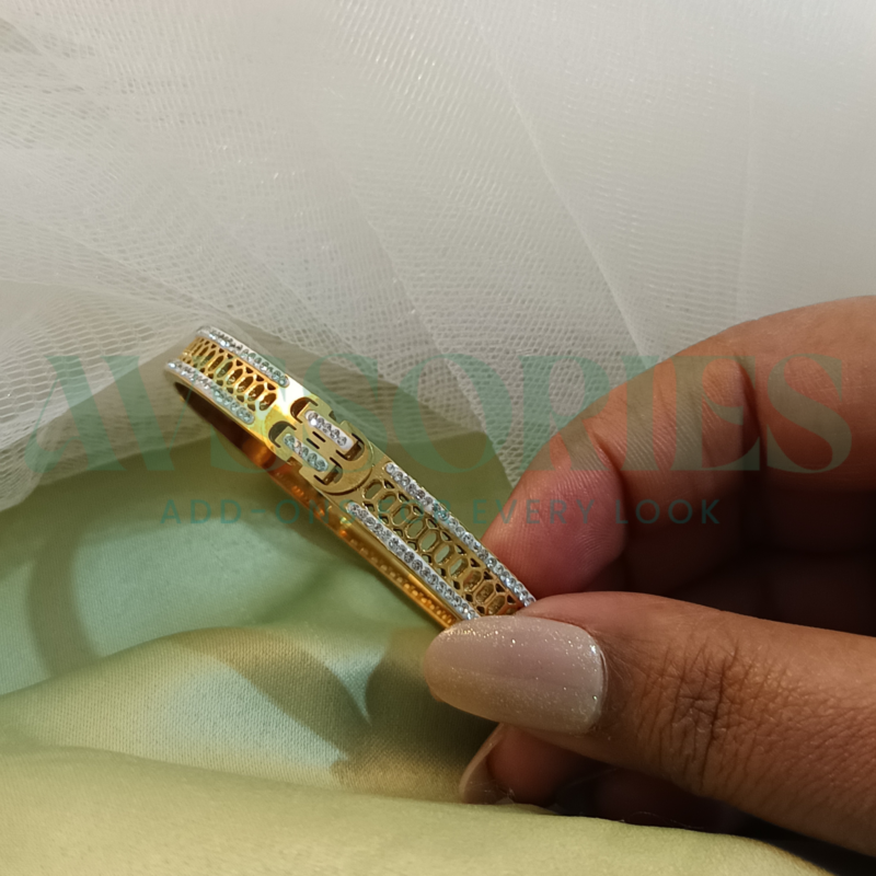 The Diamond Glow Kada pairs perfectly with traditional outfits, festive attire, and modern fashion styles. Whether worn alone as a statement piece or stacked with other bangles for a layered look, it adds a glamorous sparkle to your wrist.