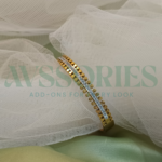 The Diamond Highway Kada is a bold and sophisticated accessory designed for those who love modern elegance. Featuring a linear row of sparkling diamond-like stones, the design resembles a shining highway of brilliance that beautifully wraps around your wrist.
