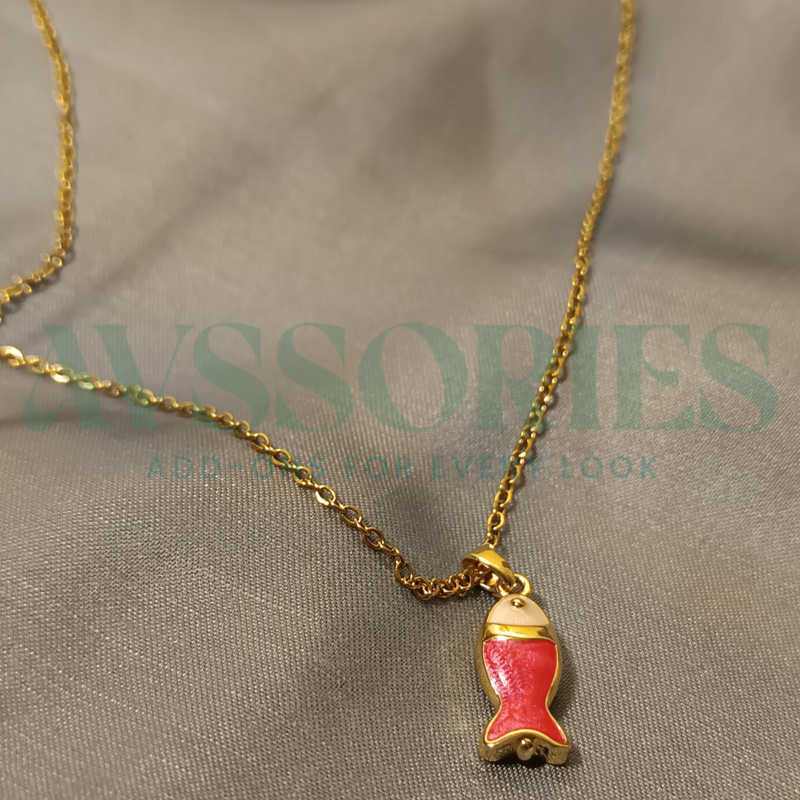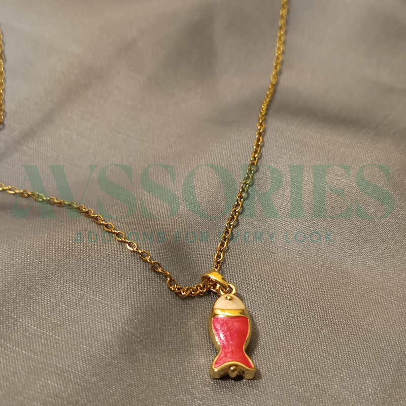 The Fish Necklace is a creative and eye-catching accessory inspired by the graceful beauty of a Fish. Designed with a fish-shaped pendant, this necklace brings a refreshing and playful element to your jewelry collection while maintaining a stylish and elegant appeal.