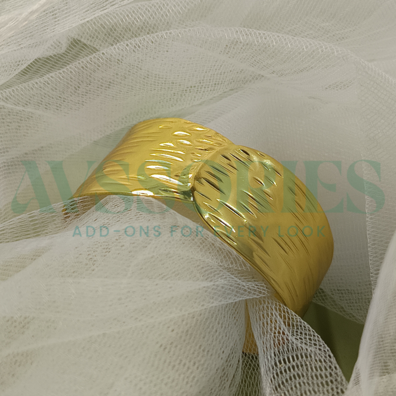 The Golden Broad Kada pairs effortlessly with traditional attire, festive wear, and modern outfits. Whether worn alone as a bold statement piece or stacked with other bangles for a fashionable layered look, it adds a luxurious and stylish touch to your wrist.