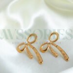 The textured detailing along the bow strands adds depth and character, while the anti-tarnish coating ensures long-lasting shine and resistance to fading. Lightweight and comfortable, these earrings are perfect for extended wear without discomfort.