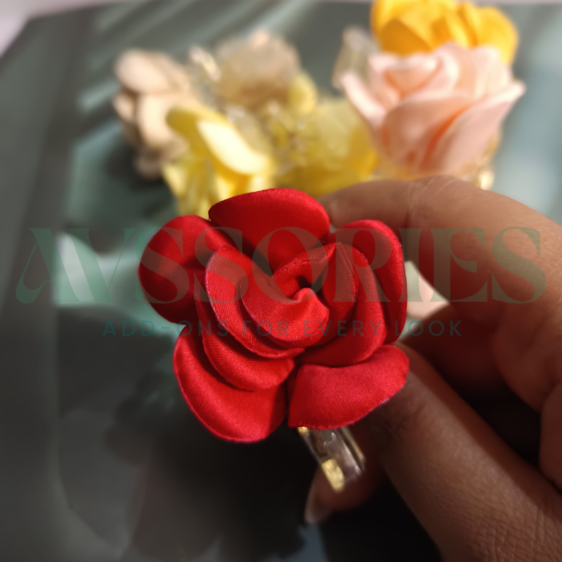 The Rose Clutcher pairs beautifully with casual outfits, traditional wear, and party looks. Whether you’re styling a quick bun, half-up hairstyle, or an elegant updo, this clutcher adds a stylish floral accent to your overall appearance.