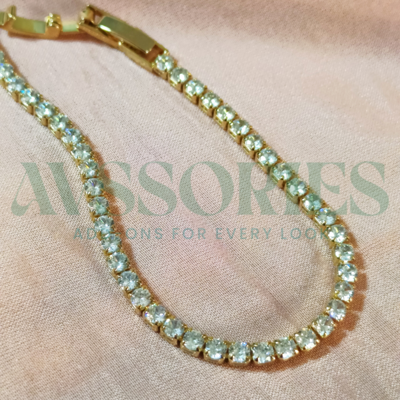 The Tennis Bracelet pairs effortlessly with both modern and traditional outfits. Whether worn alone for a graceful statement or layered with other bracelets for a trendy stacked look, it adds a luxurious sparkle to any jewelry collection.