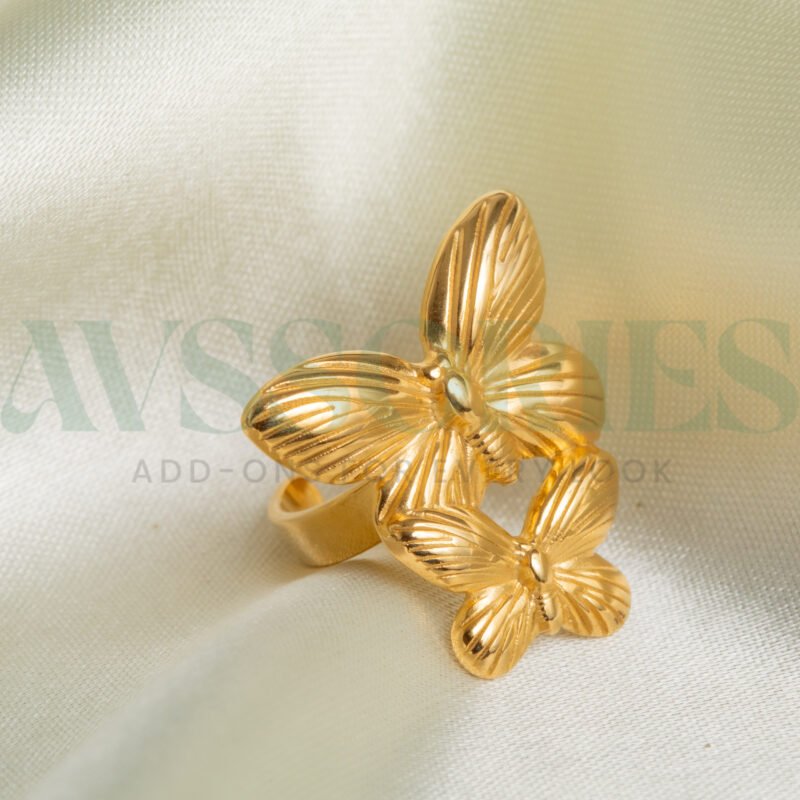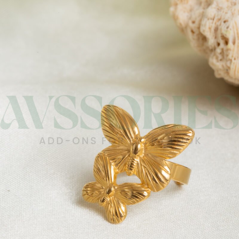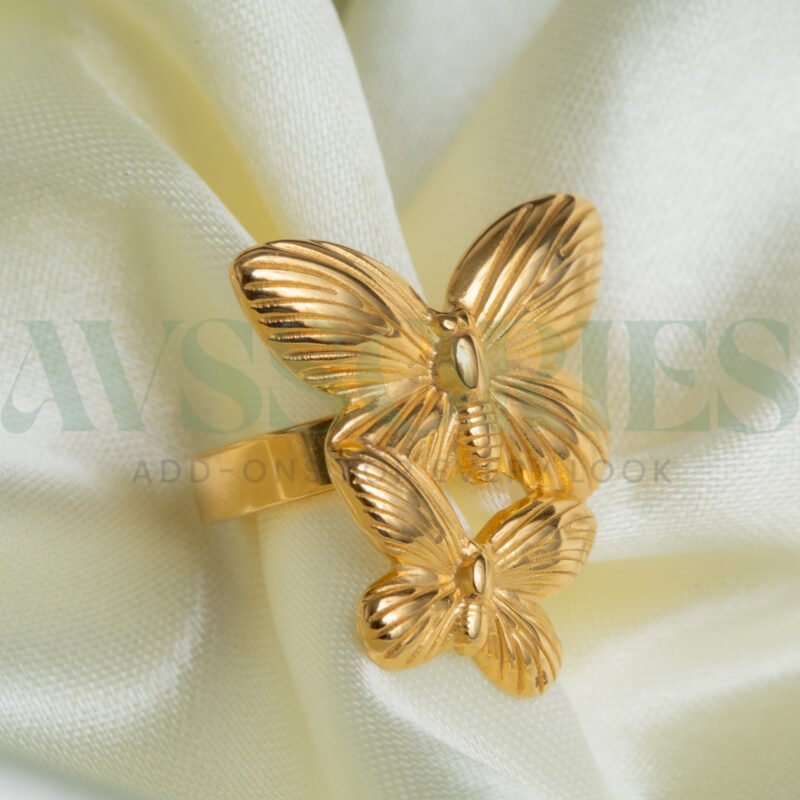 Delicate and charming, the Twin Butterfly Ring features a dual-butterfly design with an anti-tarnish finish—perfect for adding a soft, elegant touch to your everyday style.